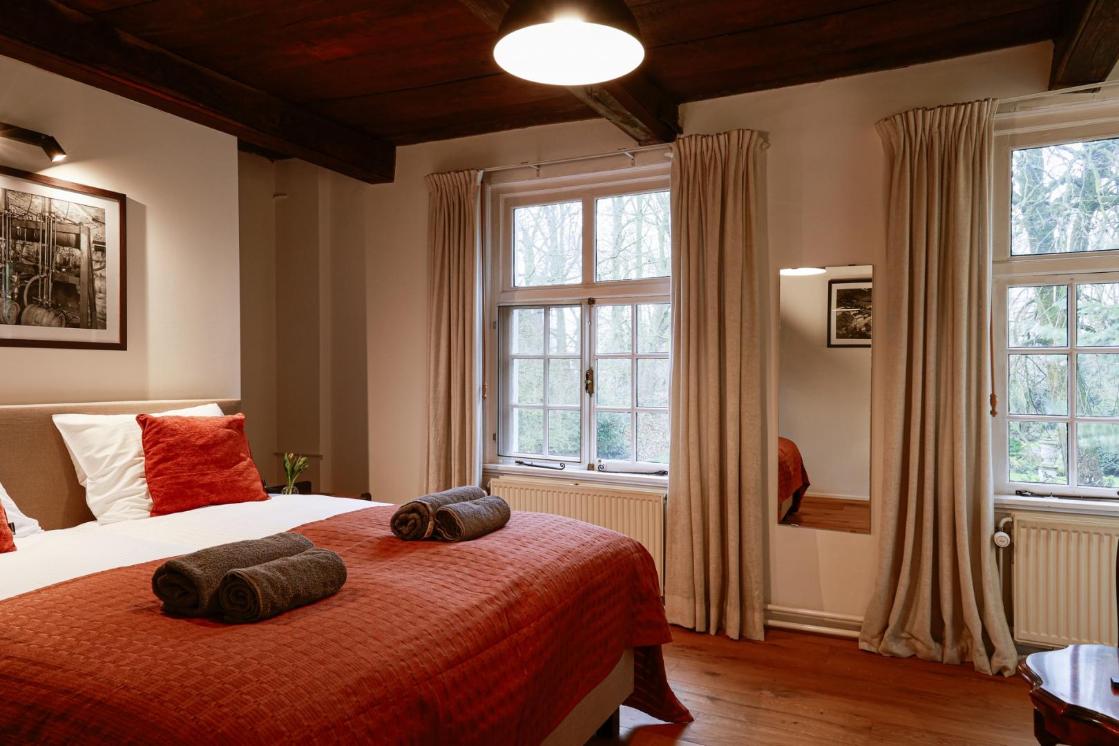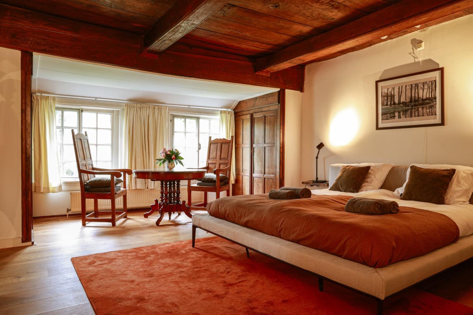 Bent u op zoek naar wat extra luxe? Kies dan voor onze suite aan de achterzijde van het pand. Deze ruime kamer met een sfeervol interieur biedt uitzicht op de prachtige stadstuin. En na een dag vol ontdekkingen is het heerlijk ontspannen in het royale ligbad.