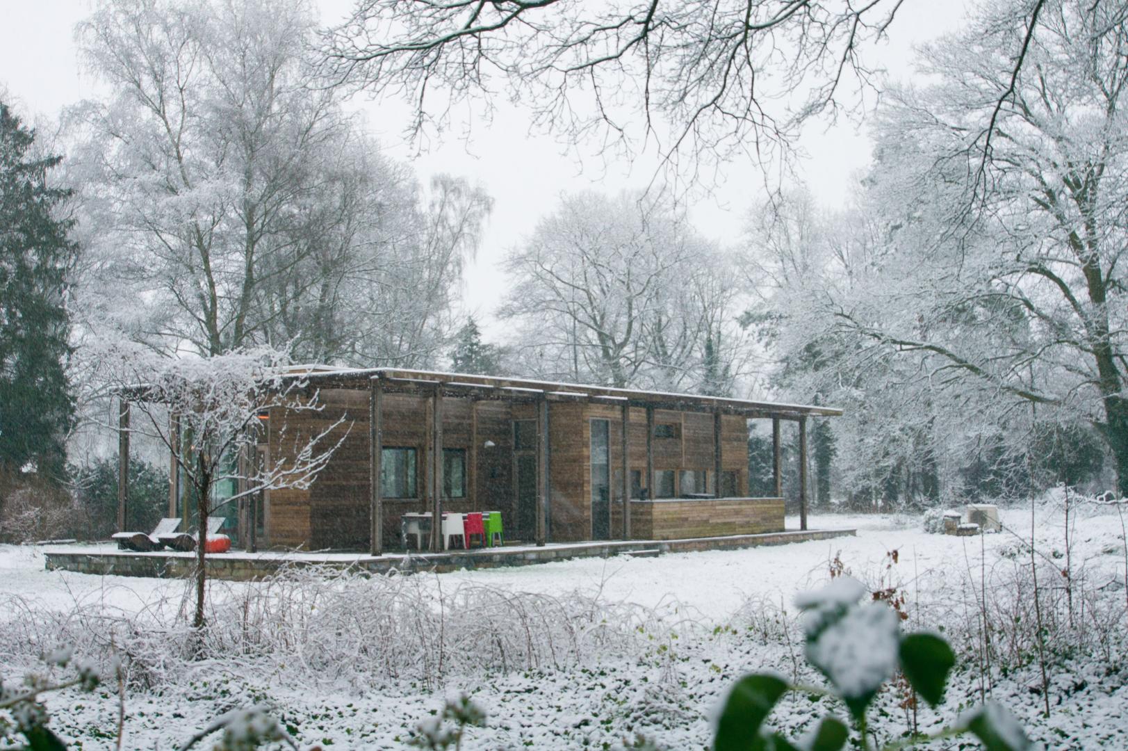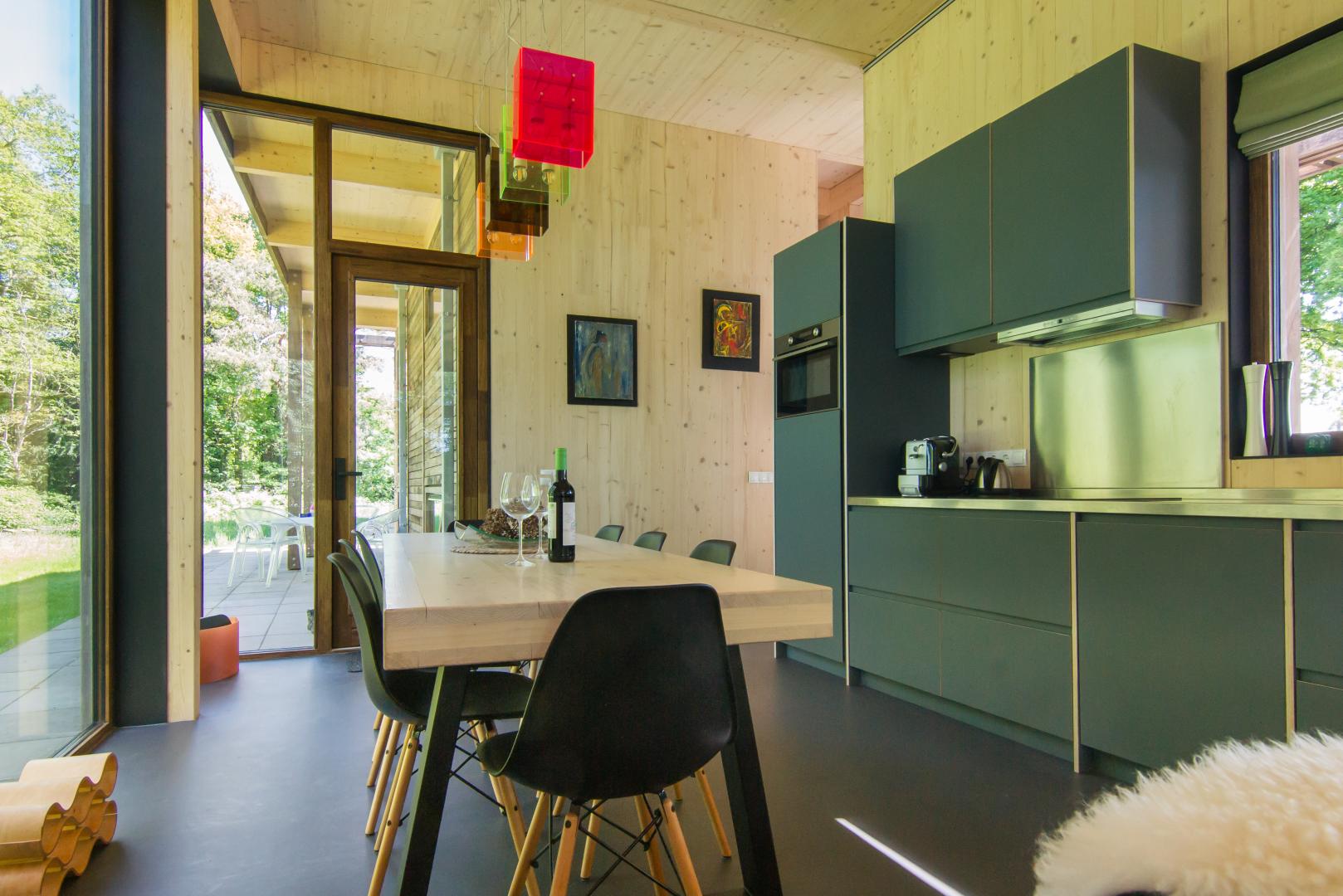 Paviljoen Esch is een stijlvol eco vakantiehuis aan een eeuwenoud zandpad op een weelderige es. Het paviljoen staat vrijstaand op een privéterrein van bijna 5000 vierkante meter. In de rechtervleugel van het paviljoen kun je met een paar traptreden omhoog naar de bel-etage of naar beneden naar het souterrain. Waar de rechtervleugel als een slimme puzzel in elkaar zit, is de linkervleugel juist één ruimte met een hoge living van vier meter hoog.