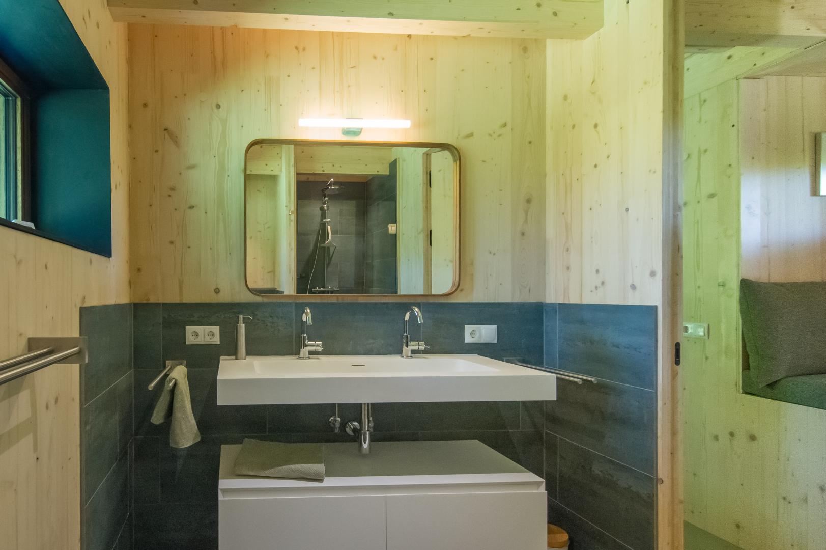 Er valt een zee van licht in het souterrain met twee ruime slaapkamers, een kleine badkamer en bijkeuken. In de grote slaapkamer is er een nis met daarin een opklapbaar stapelbed. Zo kan deze kamer in een handomdraai veranderd worden van een ruime tweepersoonskamer naar een slimme vierpersoonskamer.